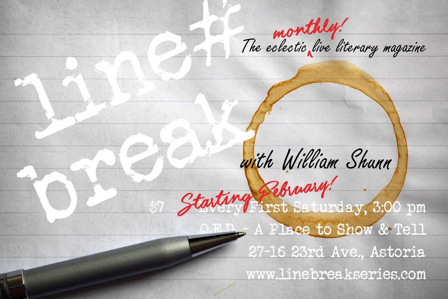 Greetings, New York! We're very pleased to announce the new Line Break reading series, a showcase for the vibrant literary scene of Astoria, Queens, and beyond! In prose writing, a line break indicates the start of a new thought or...